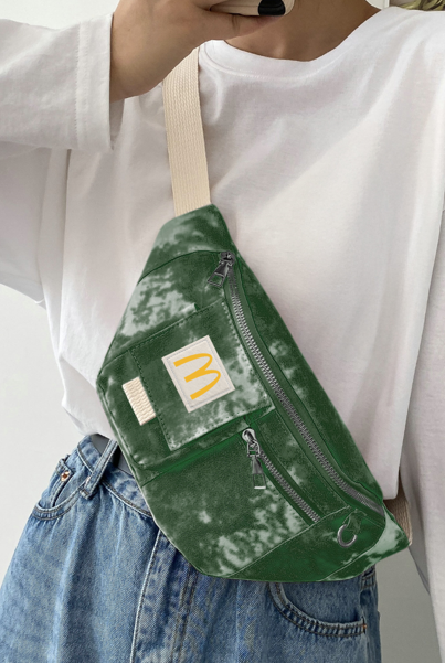 Riñonera verde estilo tie-dye con correa ajustable y diseño moderno. Ideal para un look casual y funcional. Perfecta para llevar lo esencial con estilo y comodidad.